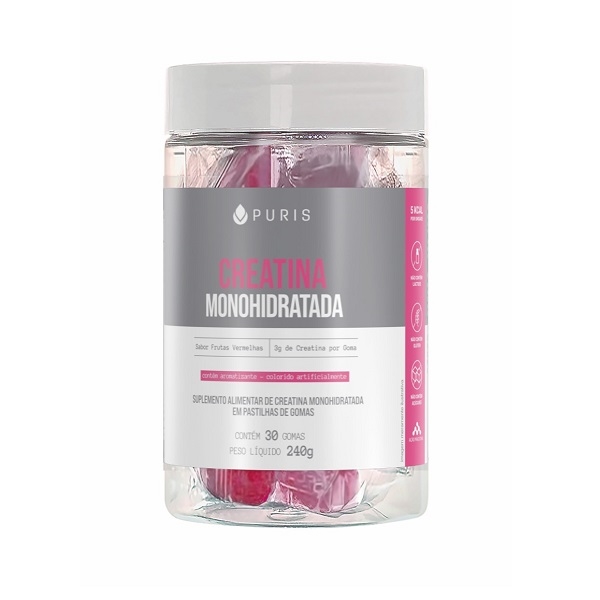 A Creatina Monohidratada em Gomas da Puris oferece uma forma prática, saborosa e inovadora de suplementar creatina. Com 3g por unidade, é ideal para quem busca aumento de desempenho muscular, melhora da saúde cerebral e suporte ao metabolismo energético. As gomas são sabor frutas vermelhas, não contêm glúten, lactose, corantes artificiais nem açúcares adicionados. Uma excelente opção para atletas, praticantes de atividade física e também para quem deseja mais energia e qualidade de vida. Com apenas 5 kcal por goma, pode ser consumida diariamente de forma conveniente e agradável.